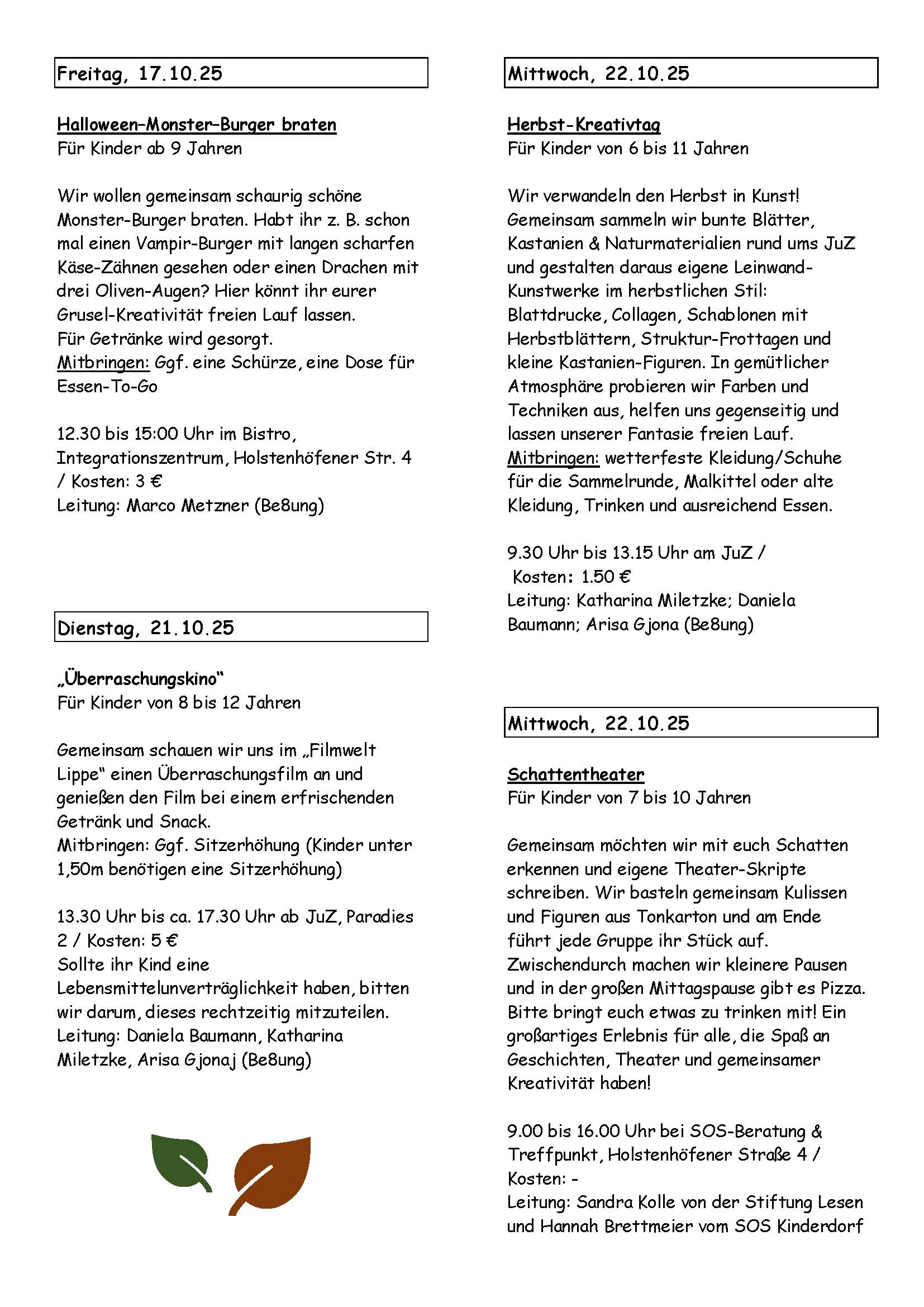 Herbstferien-Aktionen von Be8ung