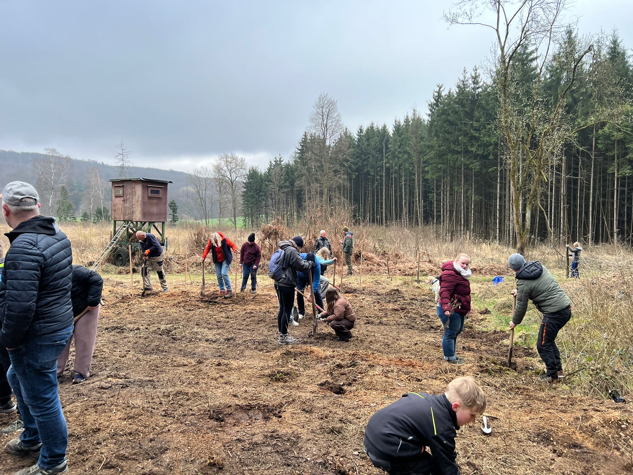Am Samstag, dem 21.03.2026, hat sich ein Teil der Klasse 5b zusammen mit den Eltern aufgemacht, um gemeinsam an der traditionellen Pflanzaktion der Stadt Blomberg mitanzupacken. Ausgerüstet mit Schaufeln, Spaten und Gummistiefeln haben sie geholfen, 250 Lärchen in den Stadtwald einzupflanzen, um aktiv etwas für Klima und Natur vor der eigenen Haustür zu tun. Weitere Familien der Klasse, die leider aus organisatorischen Gründen nicht teilnehmen konnten, haben stattdessen Geld gespendet. Eine tolle Aktion, die nicht nur hilft, sondern auch sehr viel Spaß gemacht hat!